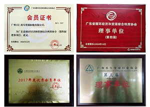 擁有"密銷" "密收"品牌商標;2017年公司被評估為廣州市再生資源行業優秀會員單位; 2018年被推選為廣州市再生資源行業協會理事單位;